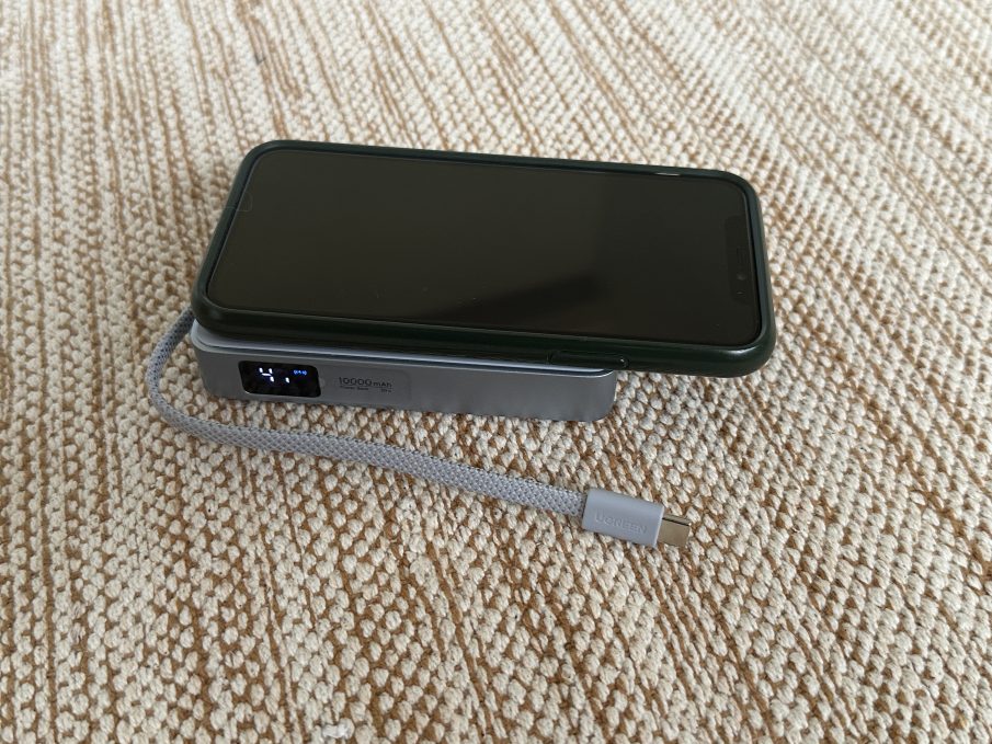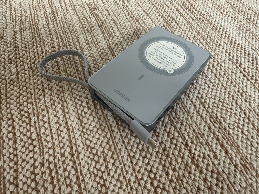 La capacité de 10 000 mAh est suffisante pour 1 à 1,5 recharge complète d’un smartphone récent, voire plus si vous rechargez des AirPods ou un appareil moins énergivore. Lorsqu’on branche un appareil en USB-C, la batterie bascule en charge filaire à 30W, ce qui permet de recharger une tablette ou même un petit MacBook en dépannage. Le passage du sans-fil au filaire se fait automatiquement, sans manipulation.